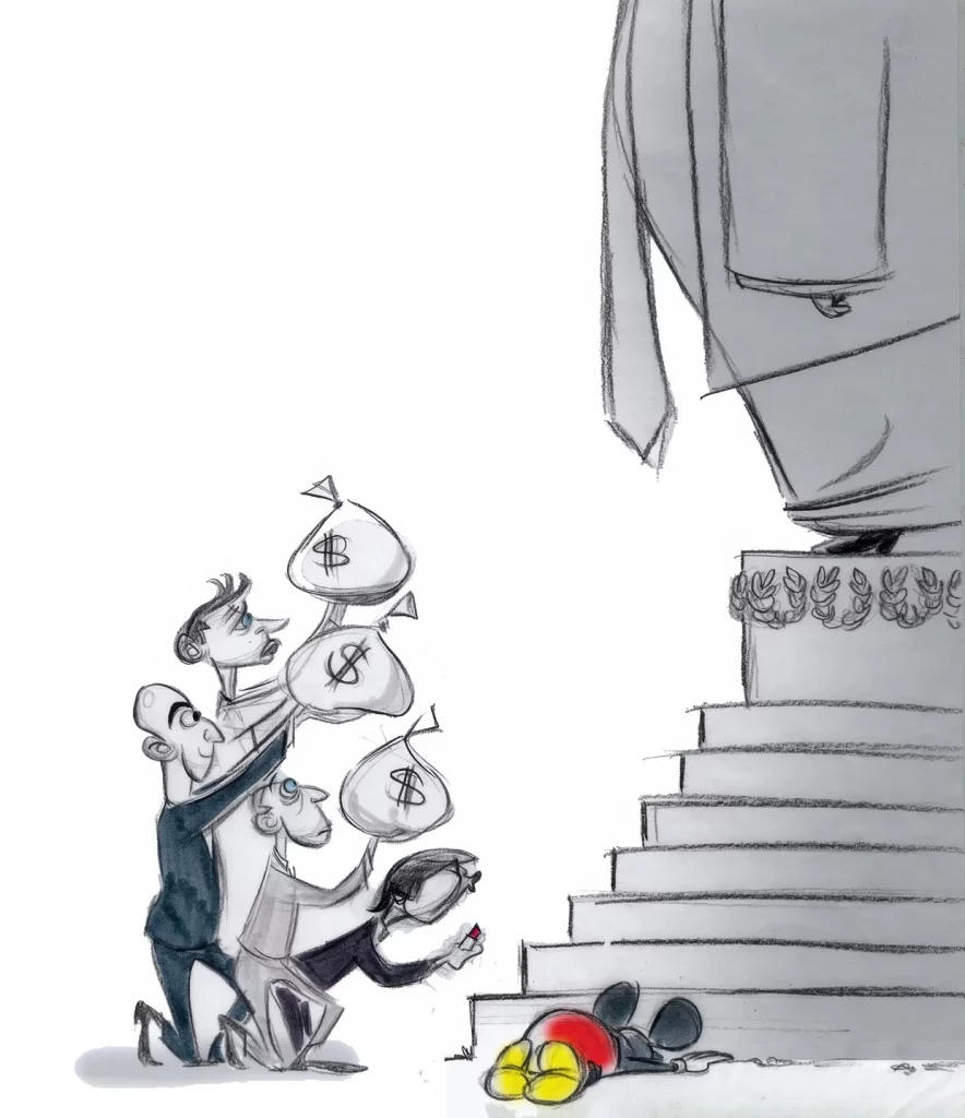 Die renommierte Karikaturistin Ann Telnaes hat nach über 16 Jahren ihren Job bei der «Washington Post» an den Nagel gehängt. Auslöser dafür war ein Streit mit dem Meinungsressort der Zeitung, das einen Entwurf abgelehnt hatte, auf dem unter anderem der Meta-CEO Mark Zuckerberg und Amazon-Gründer – und heutiger Eigentümer der «Washington Post» – Jeff Bezos mit prall gefüllten Geldsäcken vor einer Statue des künftigen US-Präsidenten Donald Trump auf die Knie gehen. Der US-amerikanische Unternehmer und Investor Jeff Bezos hat 2013 die Washington Post für 250 Millionen US-Dollar erworben. Jetzt schleimt er sich bei Trump ein!